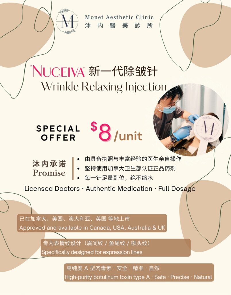 Nucieva and Botox are both botulinum toxin type A products, widely used in aesthetic medicine to relax facial muscles and reduce dynamic wrinkles such as forehead lines, frown lines, and crow’s feet.